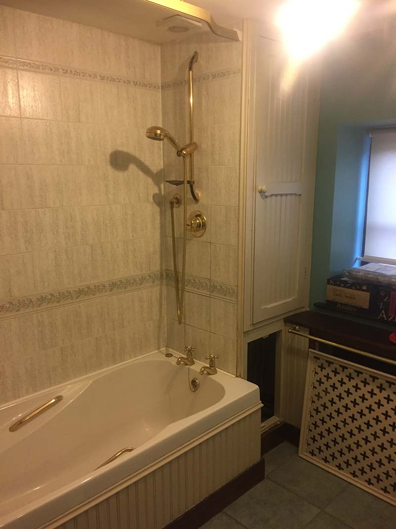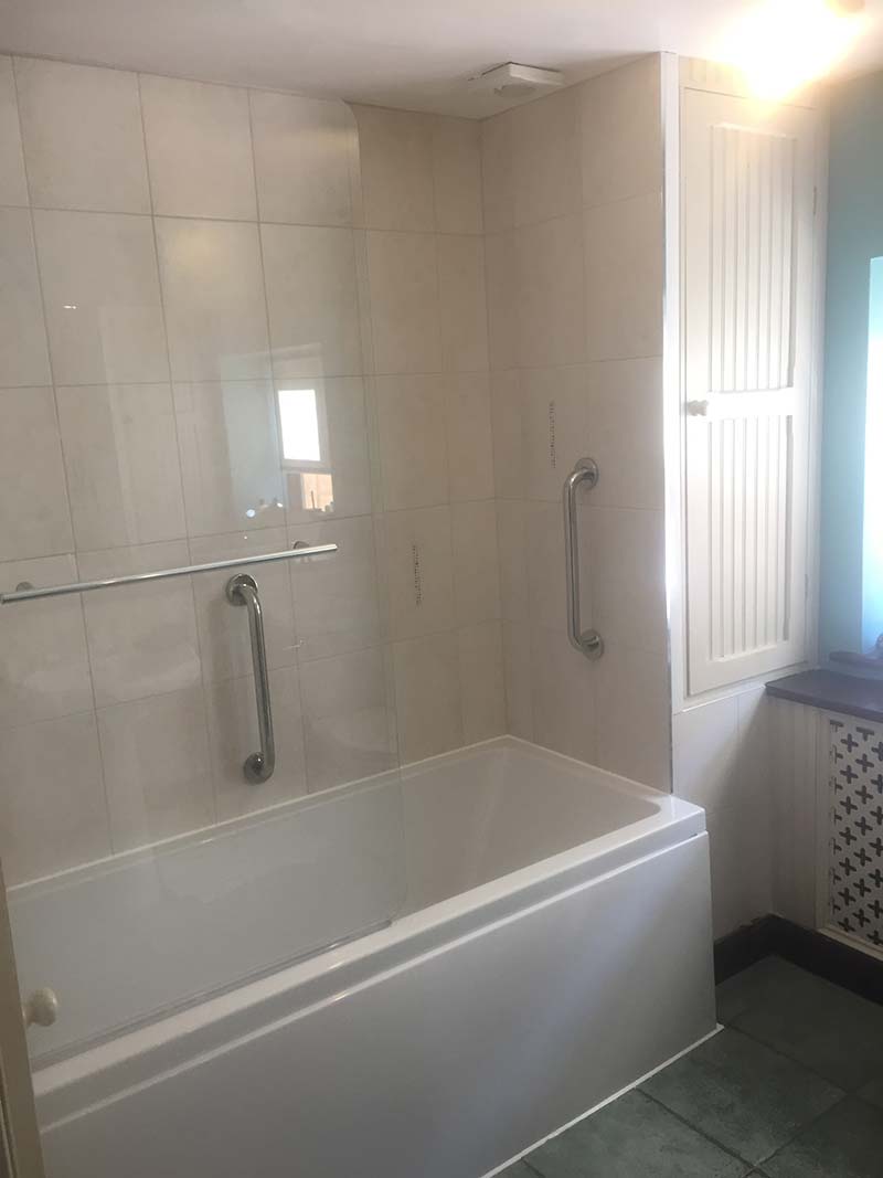 Bathroom refurbishment, including existing bath and tiles removed, in West Kingsdown. New bath, shower and basin taps fitted. Retiled around bath area and shower screen fitted.